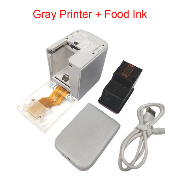 Mini Handheld Mbrush Food Printer Portable Inkjet Pen Print Custom DIY Coffee Printing Food Printer with Edible Food Ink – Gray Food Set