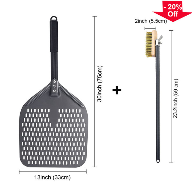 SHANGPEIXUAN 16/14/13/12 Inch Perforated Pizza Peel Rectangular Pizza Shovel Aluminum Hard Coating Pizza Peel Paddle Short Tool – 13 inch and Brush-350850