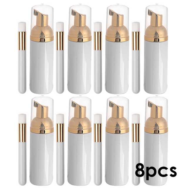 8 Set Eyelash Cleansing Mousse Shampoo 60ml Foam Cleanser with Brush for Lashes Extension Empty Logo Lash Accessories Wholesale – White Gold