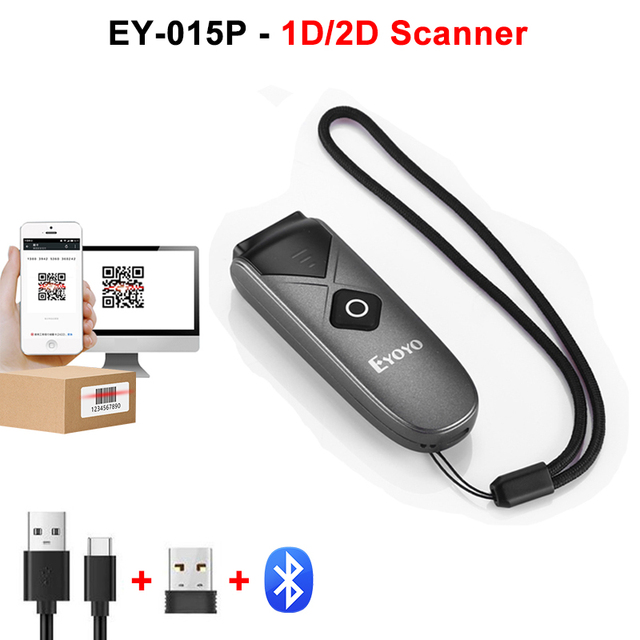 Eyoyo Mini Portable 1D 2D Bluetooth Barcode Scanner QR Code Screen Image Reader PDF417 Data Matrix USB Wired Scanning 2.4G Dongl – EY-015P Scanner