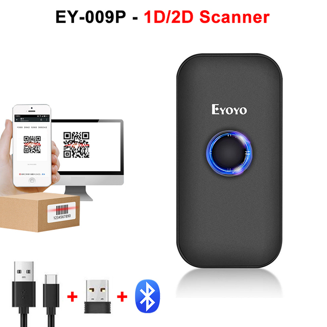 Eyoyo Mini Portable 1D 2D Bluetooth Barcode Scanner QR Code Screen Image Reader PDF417 Data Matrix USB Wired Scanning 2.4G Dongl – EY-009P Scanner