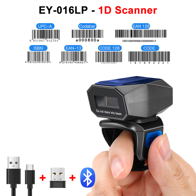 Eyoyo Wearable Glove 1D Bluetooth Barcode Scanner Laser Finger Trigger Wireless Inventory Bar Codes Reader Works With Phones PC – EY-016LP 1D Scanner