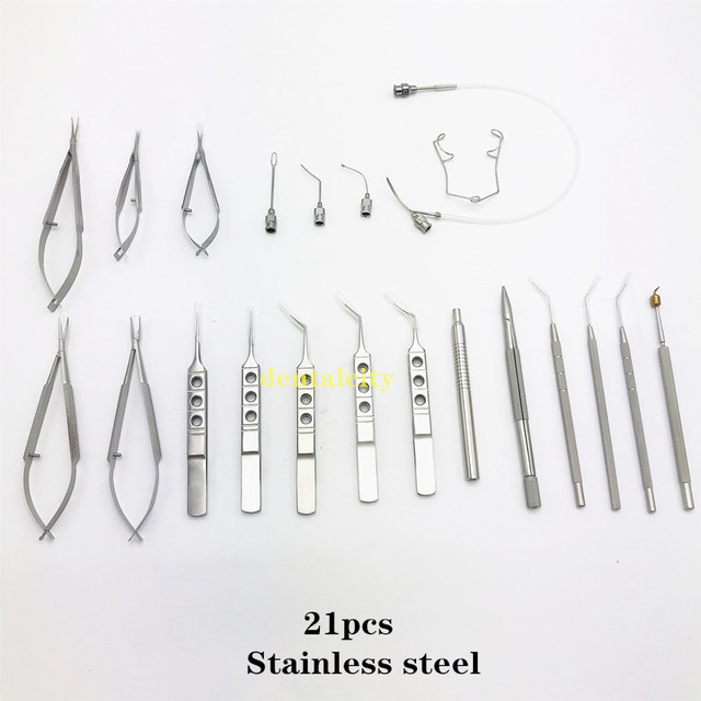 21pcs Ophthalmic Cataract & Intraocular Set Surgical Instrument Eye Micro Surgery Tools – 21pc instrument only-10