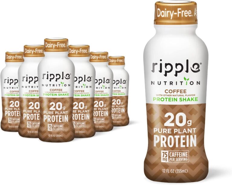 Ripple Vegan Protein Shake | Coffee Flavor | 75mg of Caffeine | 20g Nutritious Plant Based Pea Protein | Shelf Stable | Free of GMOs, Soy, Nut, Gluten, Lactose | 12 oz, Pack of 12