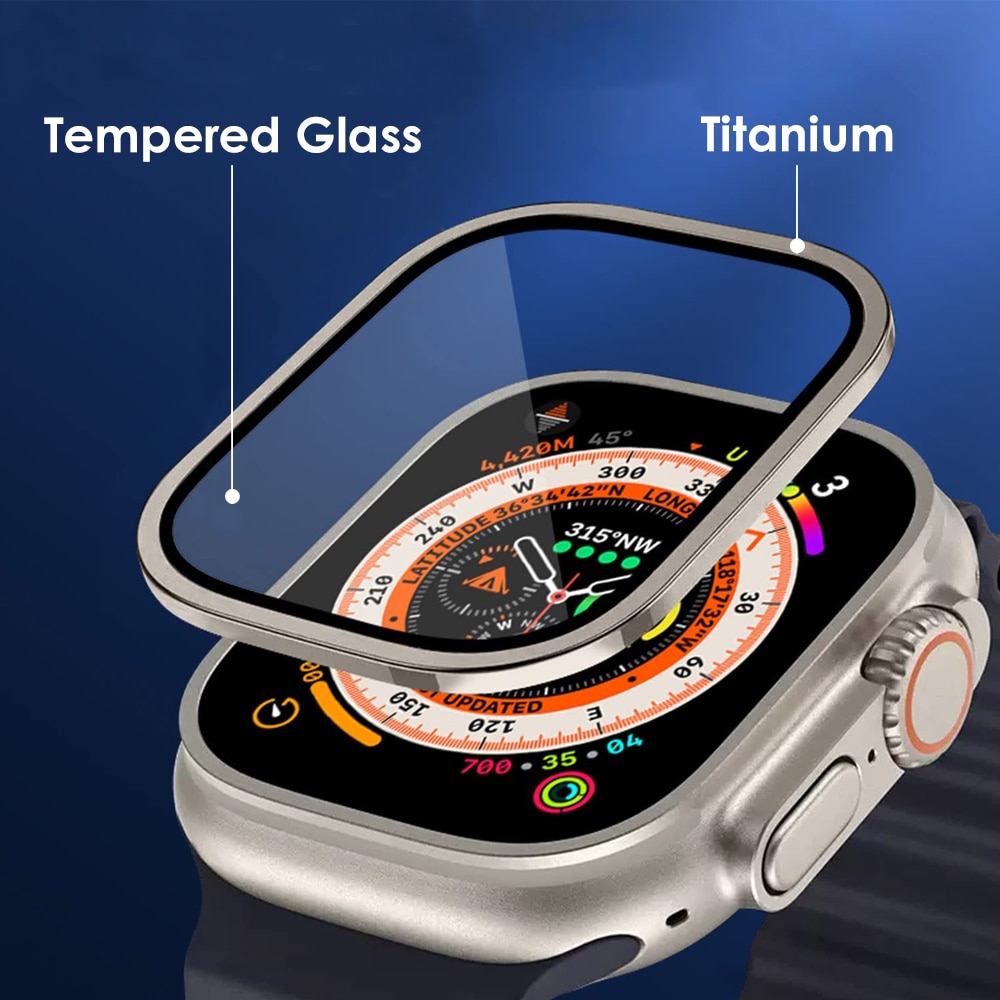 50Pcs for Apple Watch Ultra 49mm Metal Bumper Screen Protector Tempered Glass Film Aluminium Alloy Edge Accessories (Titanium)