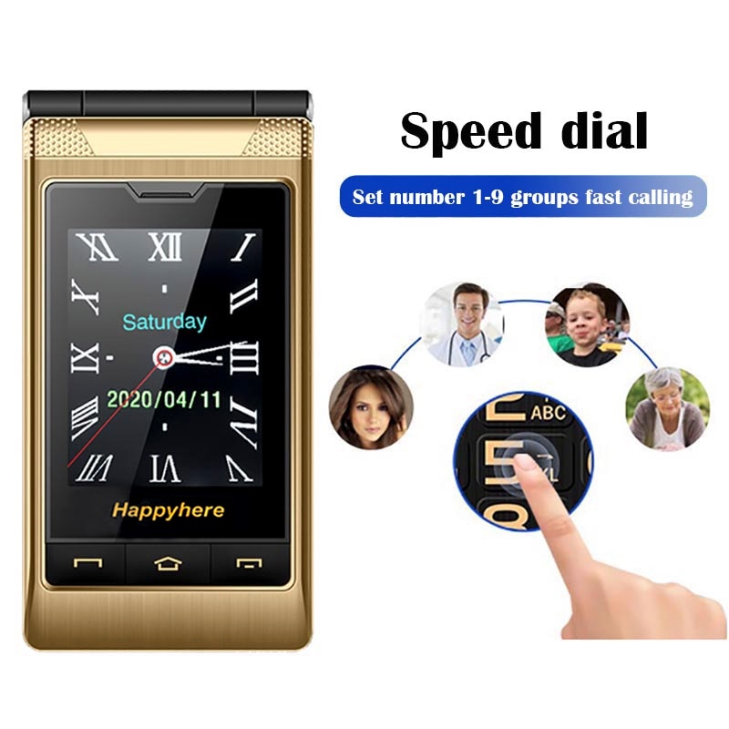 Happyhere F7 flip cell phones 3.0″ touch screen unlocked celular speed dial SOS FM radio senior Push-button cheap mobile phone