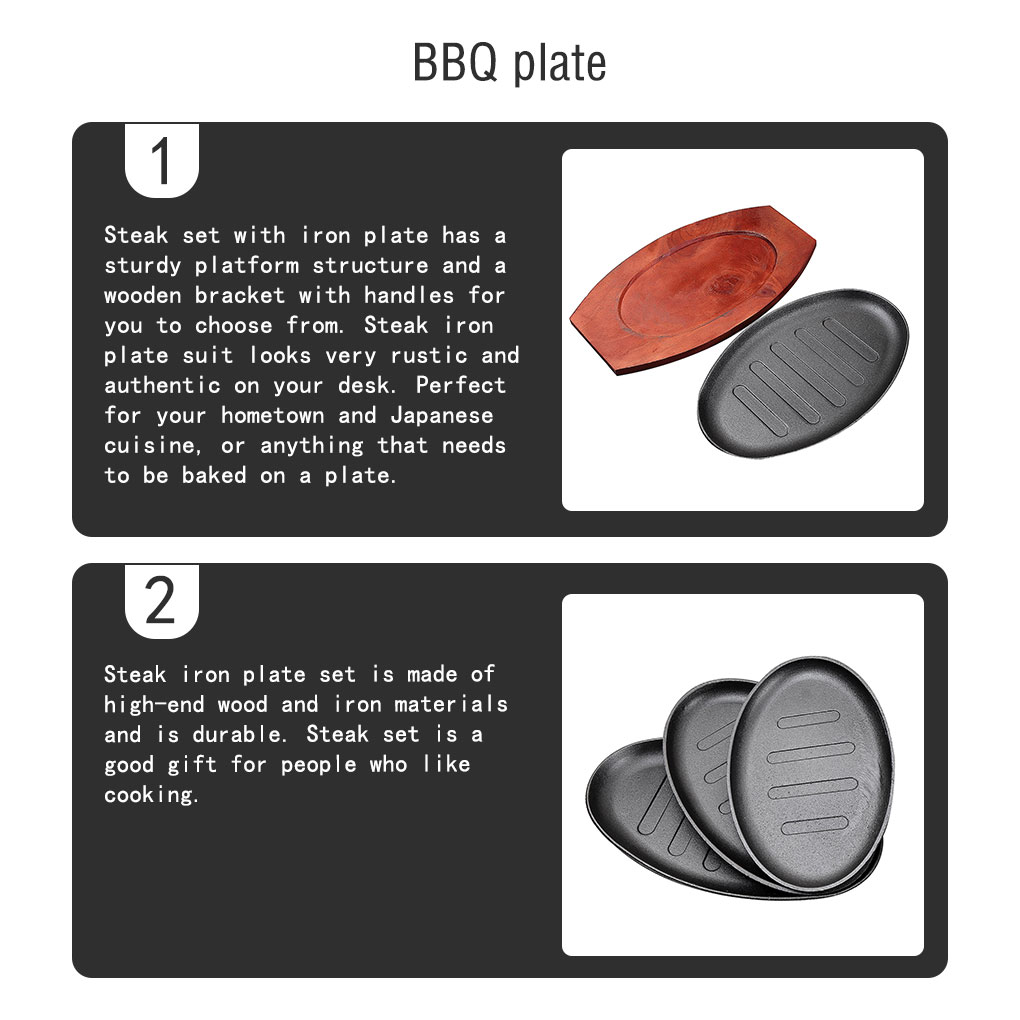 Steak Set Elaborate Barbecue Fajita Sizzling Platter Plate Outdoor Pans Wear-resistant Authentic Cooking Holder 12 inch