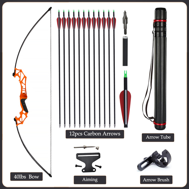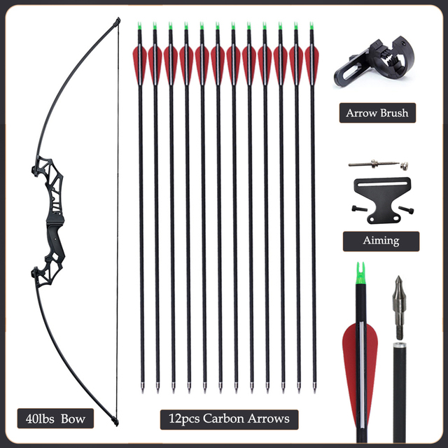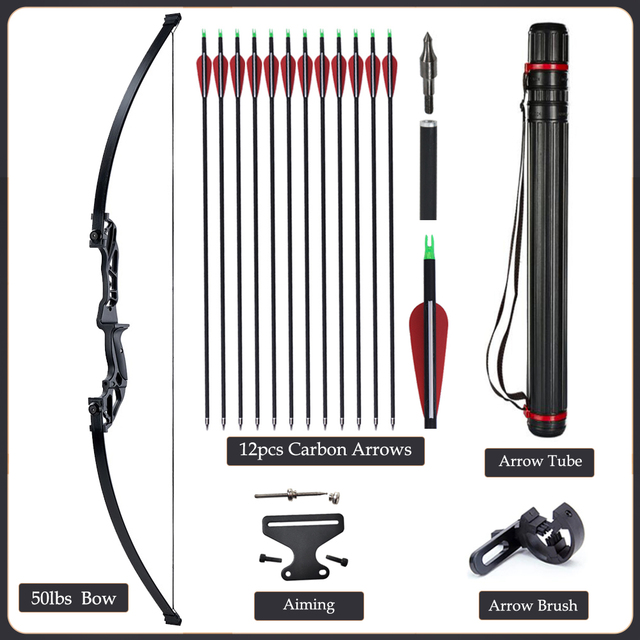 20/30/40/50lbs Archery Bow Recurve Take Down Straight Bow 12pcs Mixed Carbon Arrows Quiver Outdoor Sport Shooting Practice Bow