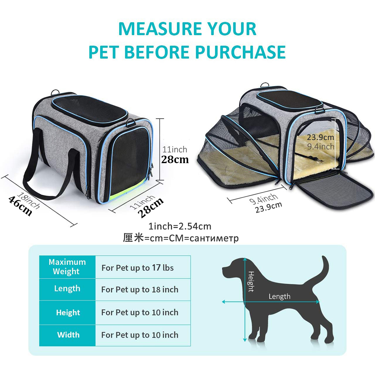 CenKinfo Carrier For Cat Pet Airline Approved Expandable Foldable Soft Dog Carrier 5 Open Doors Reflective Tapes Cat Travel Bag