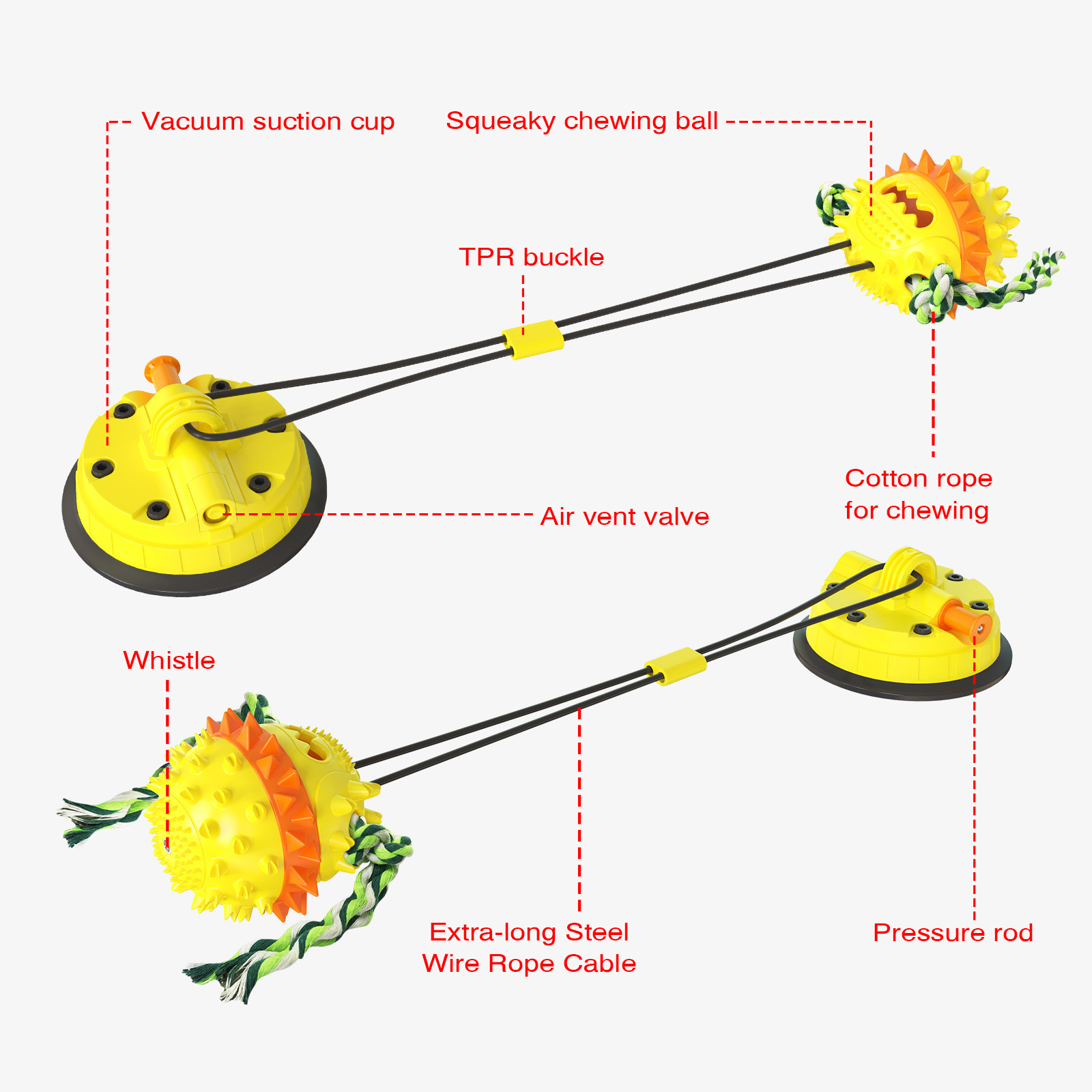 Dog Toy Tug of War Squeak Vacuum Cup Pull Rope Ball Leakage Feeding Teeth Cleaning