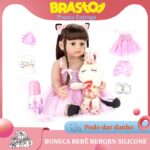 Boneca Bebê Reborn 100% Silicone Pode Tomar Banho Princesa Rosa 55cm Enviado Do Brasil