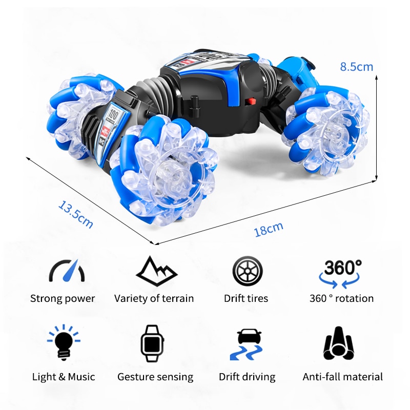 Rc Stunt Car 2.4G Radio Gesture Induction Spray Music Light Stunt Car Remote Control Car 1:24 Off-Road Watch Control Boy Toys